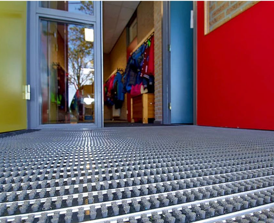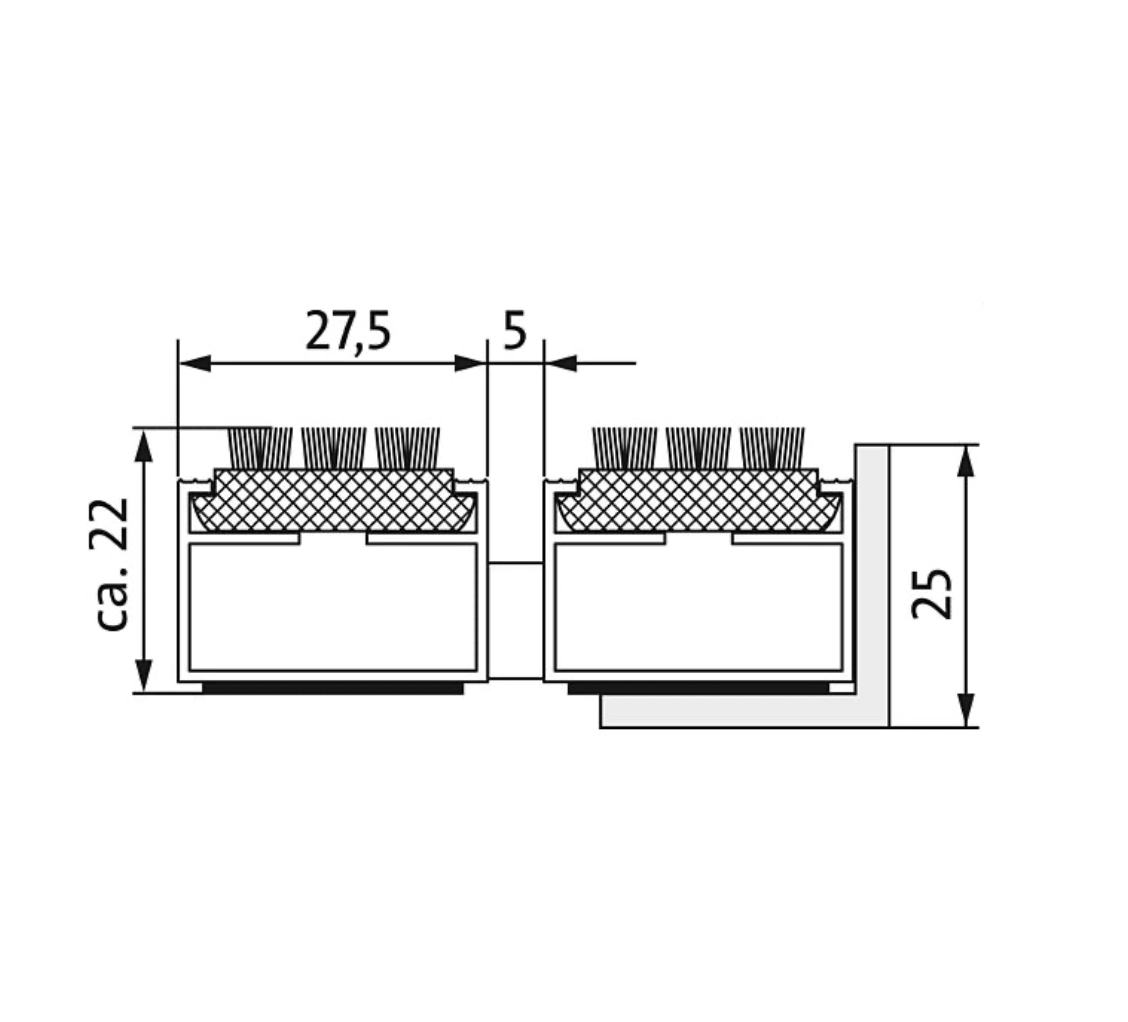 bestückt mit parallel angeordneten Borstenbündeln. Tatsächliche Mattenhöhe: + 1 bis 2 mm.