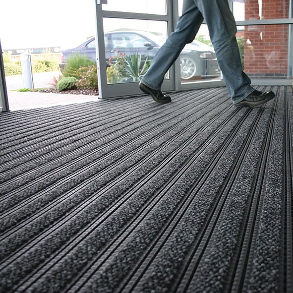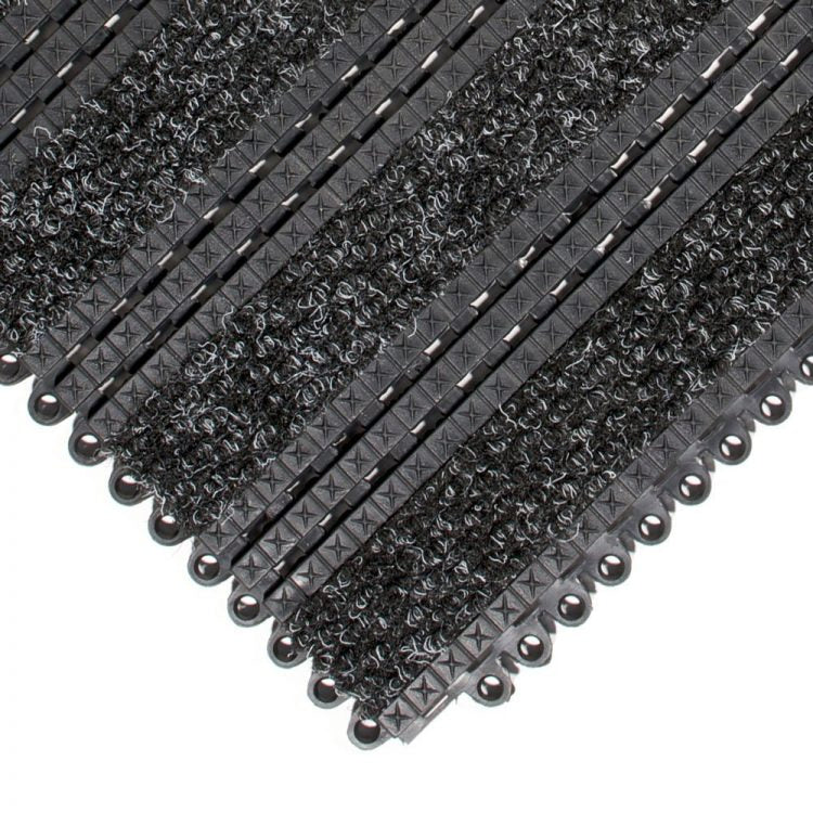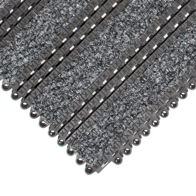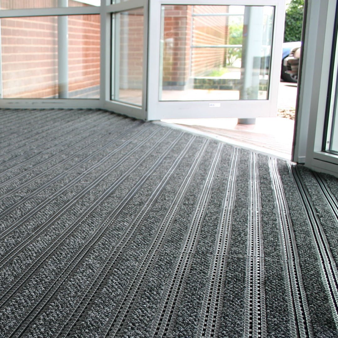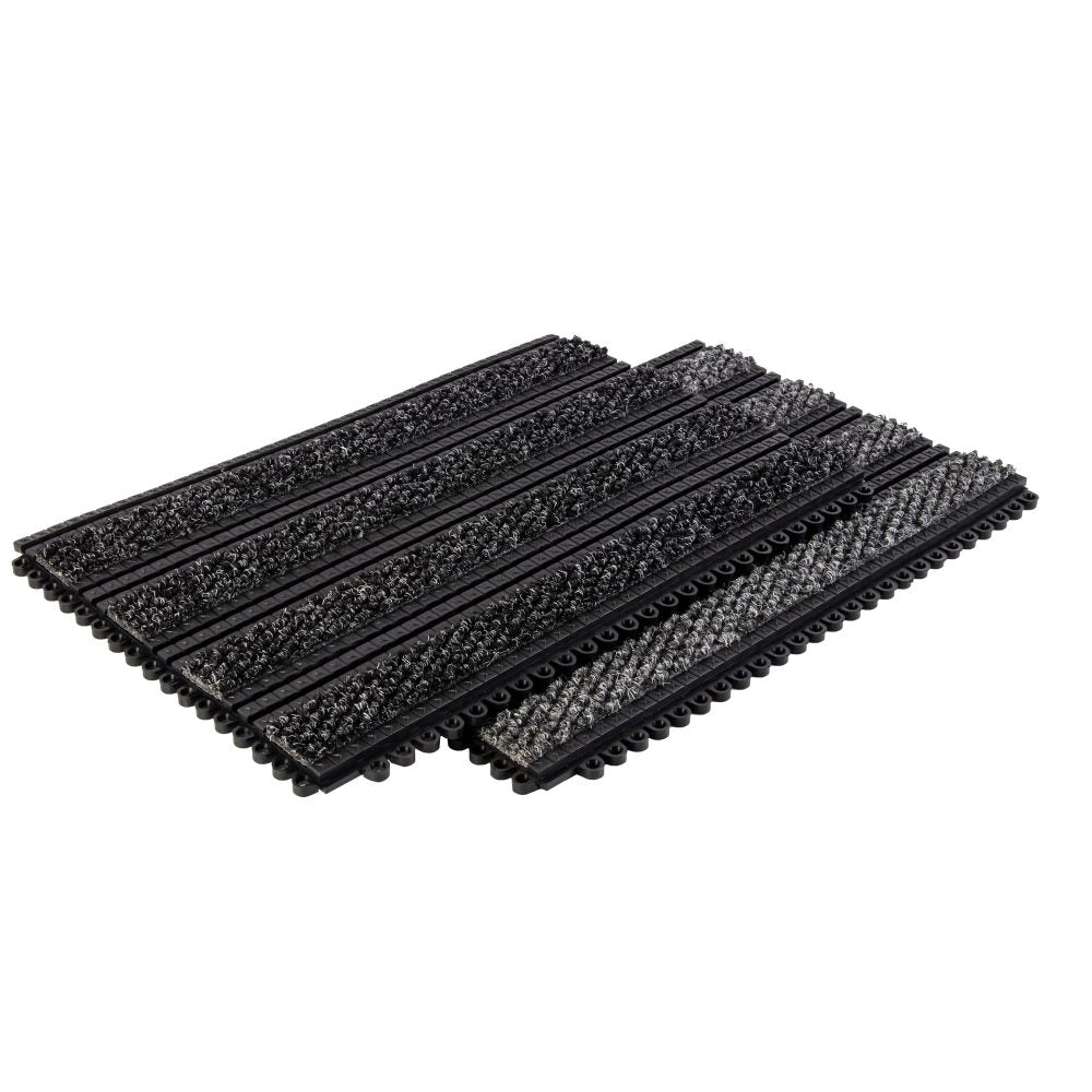 - Schmutzfangsystem aus PVC-Modulen mit hochwertiger Teppicheinlage aus Nadelfilz.