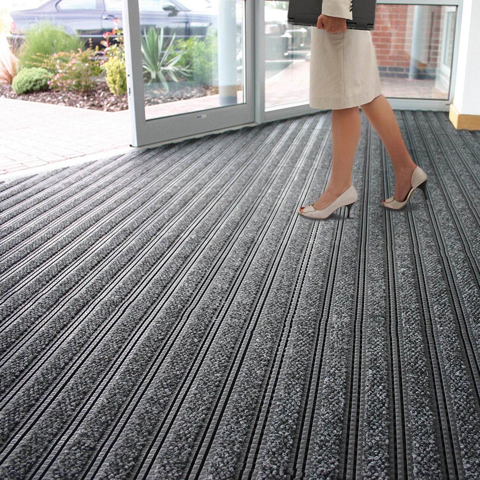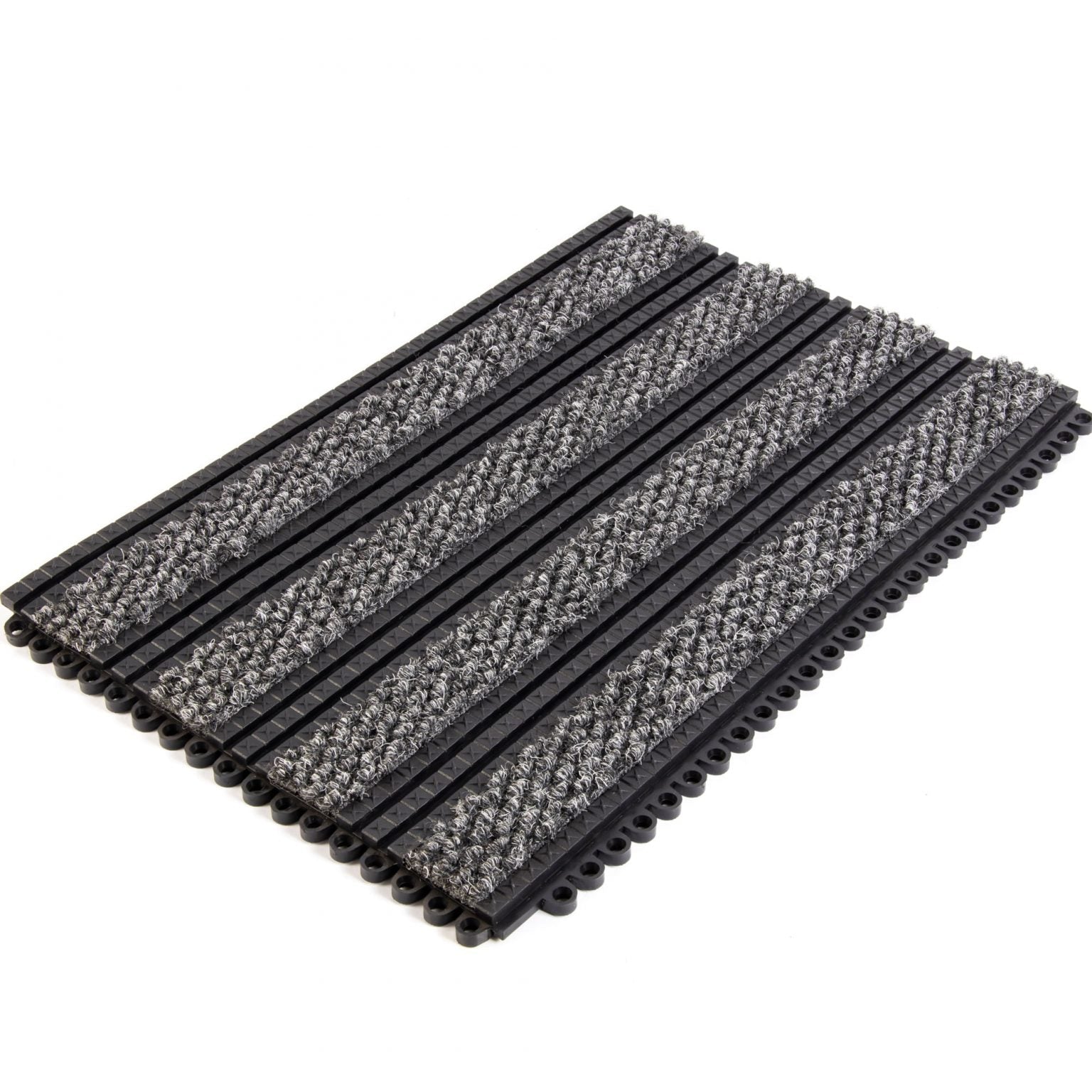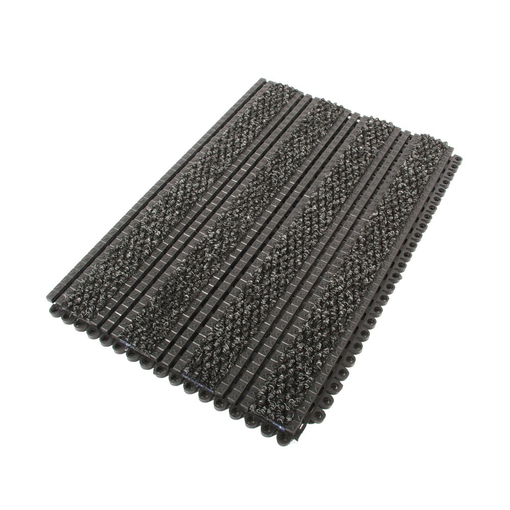 - Schmutzfangsystem aus PVC-Modulen mit hochwertiger Teppicheinlage aus Nadelfilz.