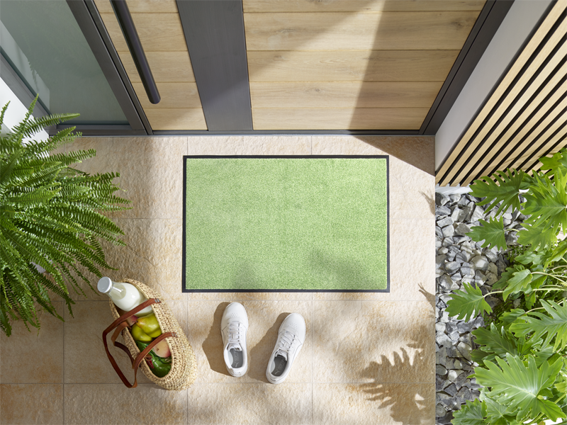 wash+dry Fußmatten sind vielseitig, da sie im Innen- wie im überdachten Außenbereich für Hygiene und Farbakzente sorgen. Die Fußmatte ist auf allen sauberen, trockenen und unbehandelten Böden rutschfest und hervorragend einsetzbar.